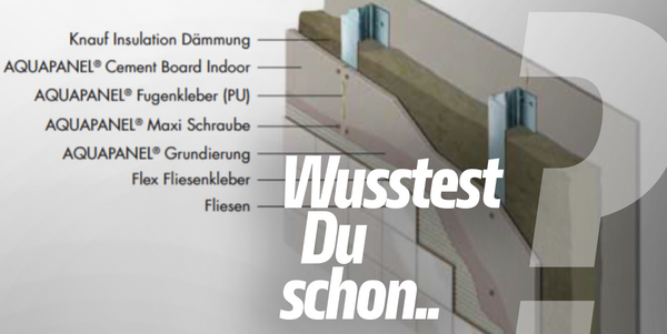 Die mit der Zementbauplatte doppelt beplankten Wände wurden raumhoch gefliest.