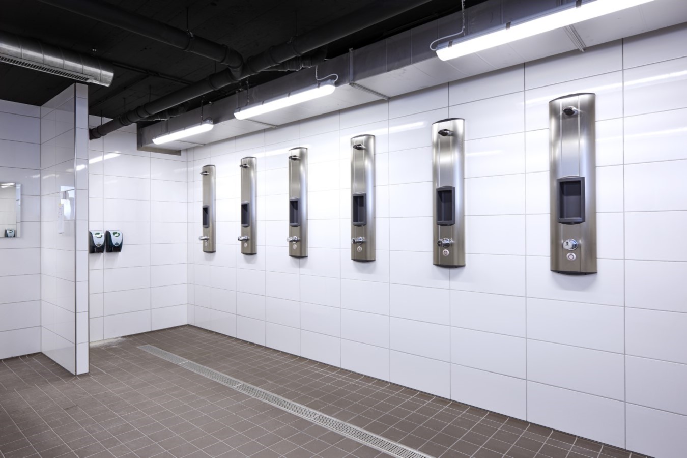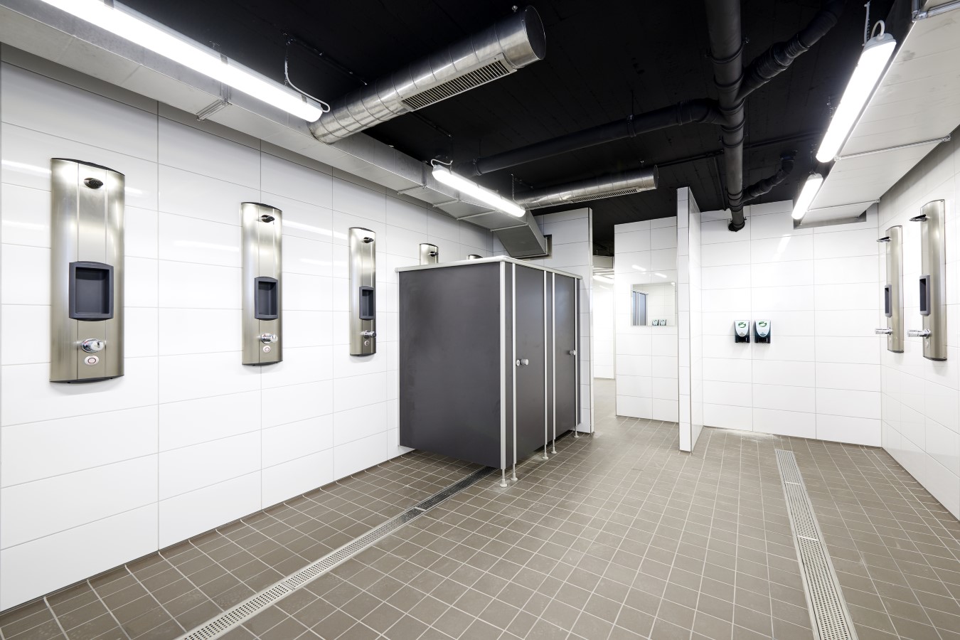 Auch die Duschen in der Waschkaue wurden mit der schimmelresistenten AQUAPANEL® Cement Board Indoor realisiert.