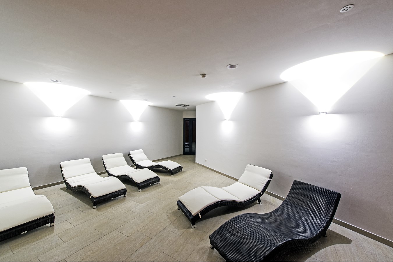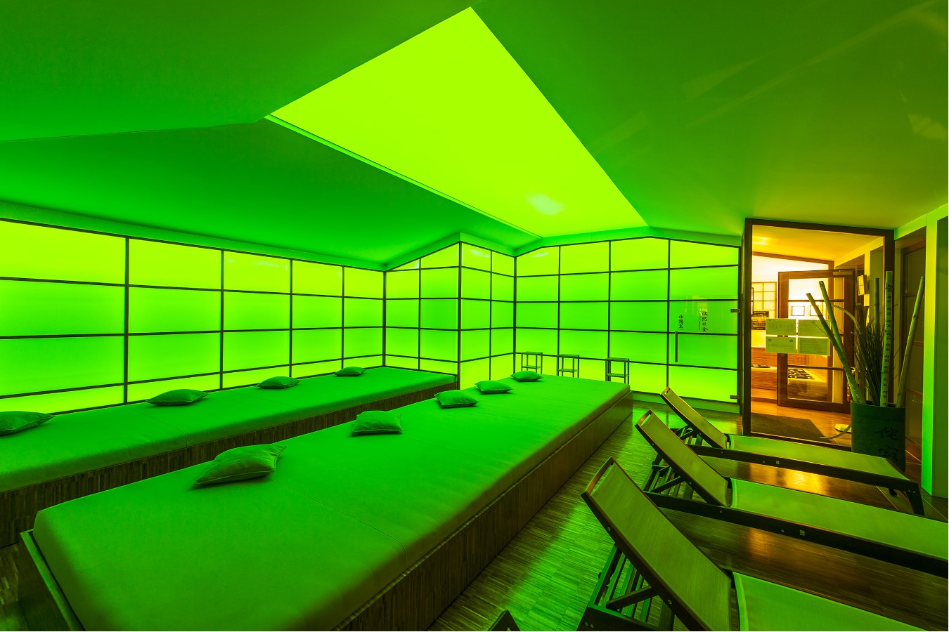 Der Ruheraum im Member Spa – mit wasserbeständigen und robusten Wänden und Decken aus AQUAPANEL® Cement Board Indoor.