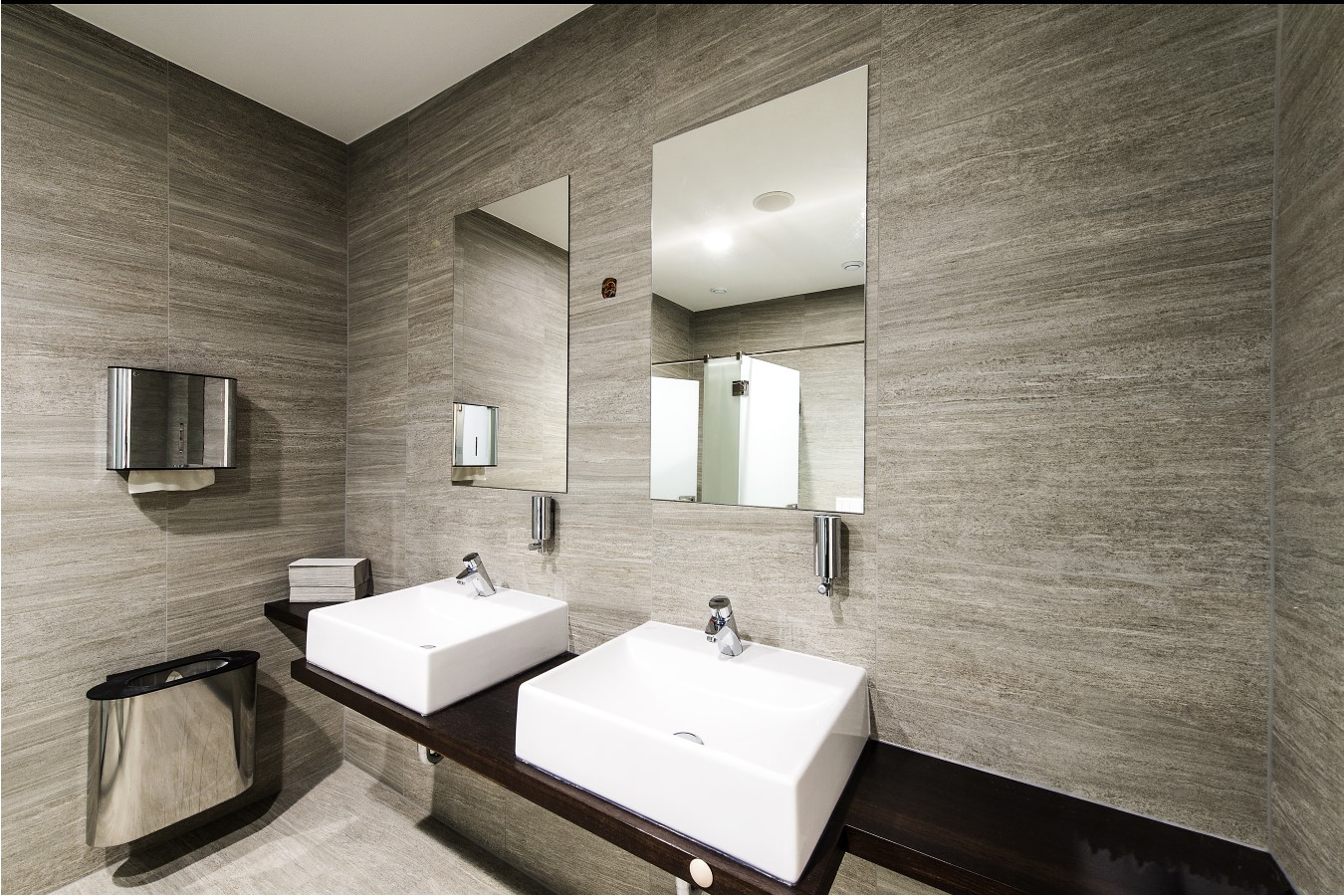 Duschen im öffentlichen Bereich sind hoch beansprucht und müssen mit entsprechend wasserbeständigen Untergründen ausgestattet sein. Auch hier wurde AQUAPANEL® Cement Board Indoor eingesetzt.