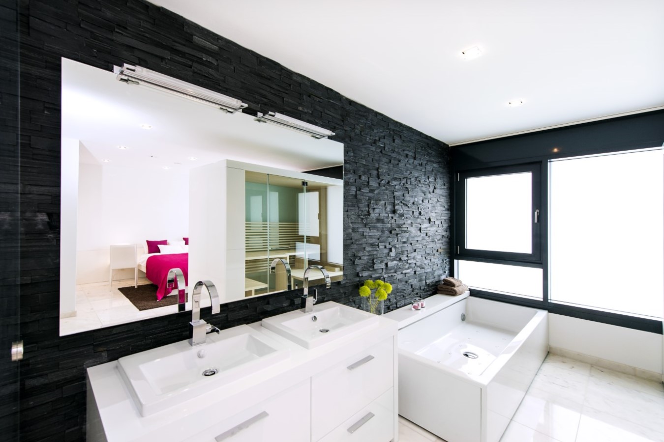 Die Knauf AQUAPANEL® Cement Board Indoor sind ein solider und haltbarer Fliesenuntergrund für den Innenausbau, insbesondere von Nass- und Feuchträumen. Trotz ihres relativ geringen Eigengewichts von nur ca. 11 kg pro m² trägt die Platte bis zu 50 kg Fliesen. So konnten auch im Upper East die Badezimmer mit schwarzem Steinzeug veredelt werden.