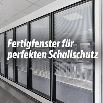 In der Variante "Verkettung" mit schmalen Rahmen wirkt die Glasfront mit den EasyWin-Fertigfenstern elegant und bringt viel Licht in die Büro- und Besprechungsräume.