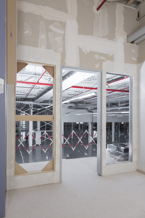 Die raumhohen Fertigfenster Knauf EasyWin für die neuen Büro- und Besprechungsräume wurden in die präzise ausgeschnittenen Fensterausschnitte der Ständerwände eingesetzt.