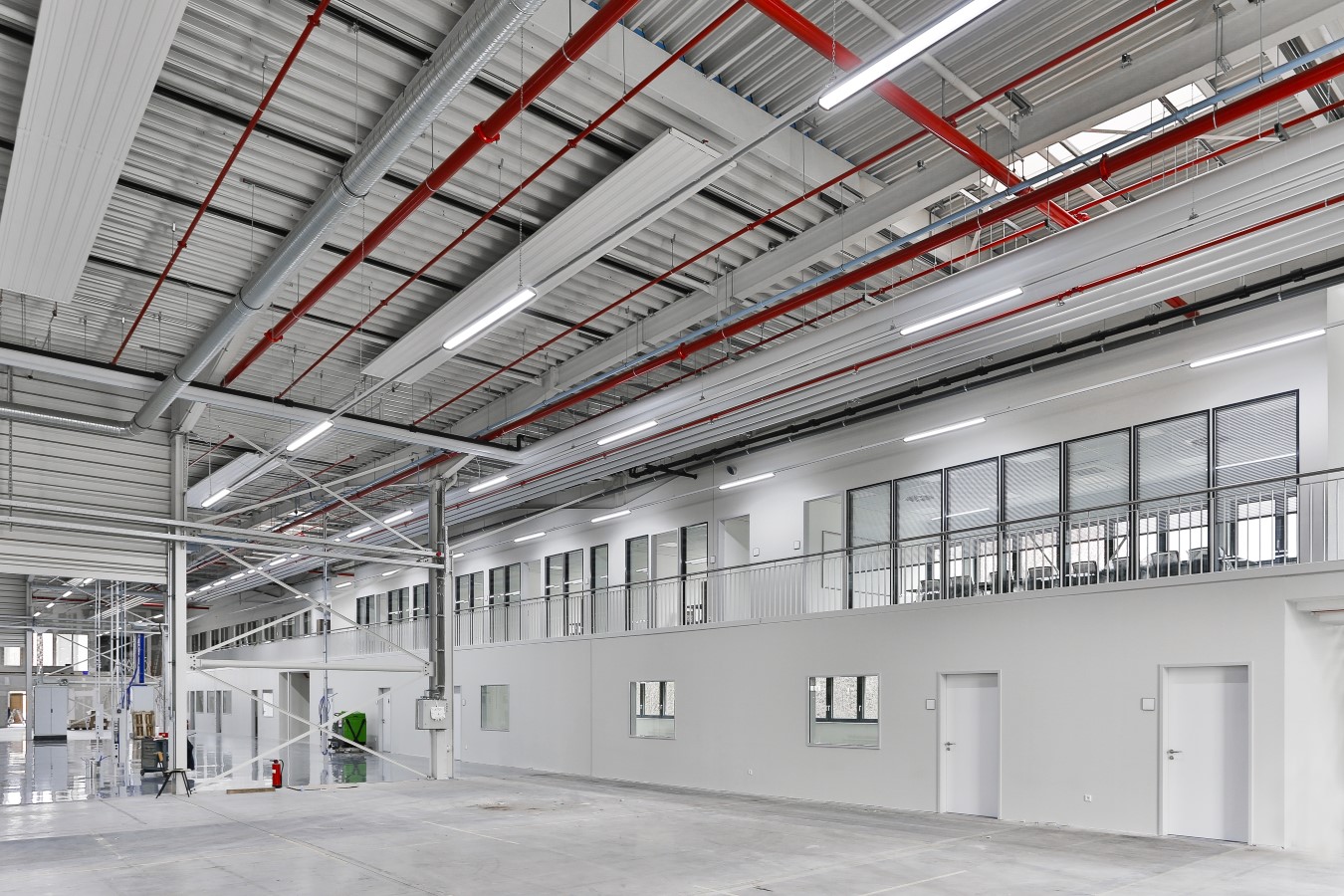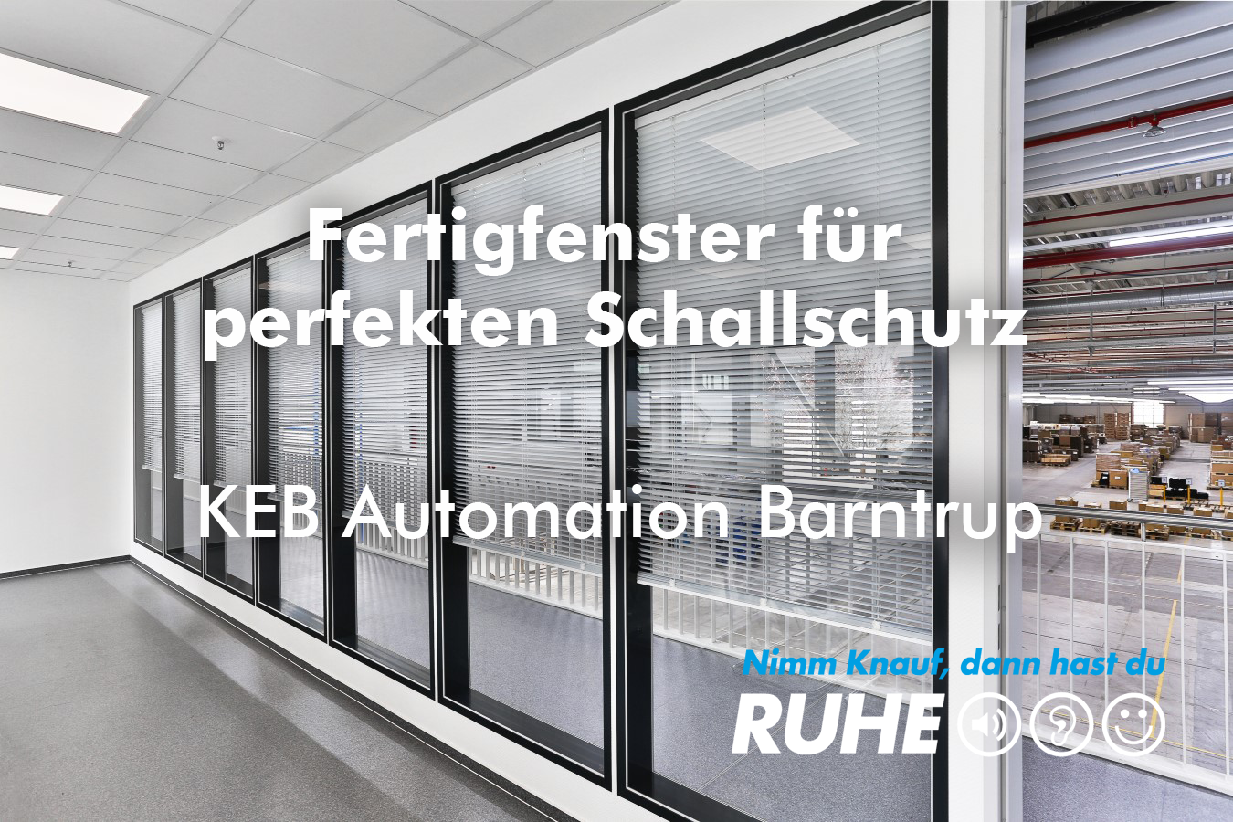 Eine elegante Glasfront aus verketteten raumhohen Knauf EasyWin Fesnterelementen bringt Licht in die Büros auf der Empore der Fertigungshalle von KEB Automation in Barntrup und lässt die visuelle Kommunikation zu.