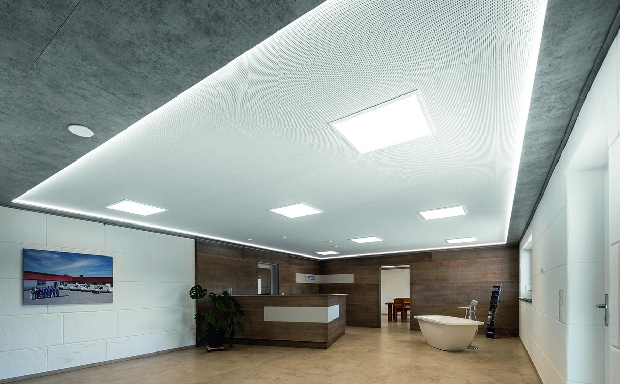 Durch das zeitlose und minimalistische Design entsteht eine ästhetische Akustikdecke, die sich leicht in jede individuelle Raumgestaltung integrieren lässt.