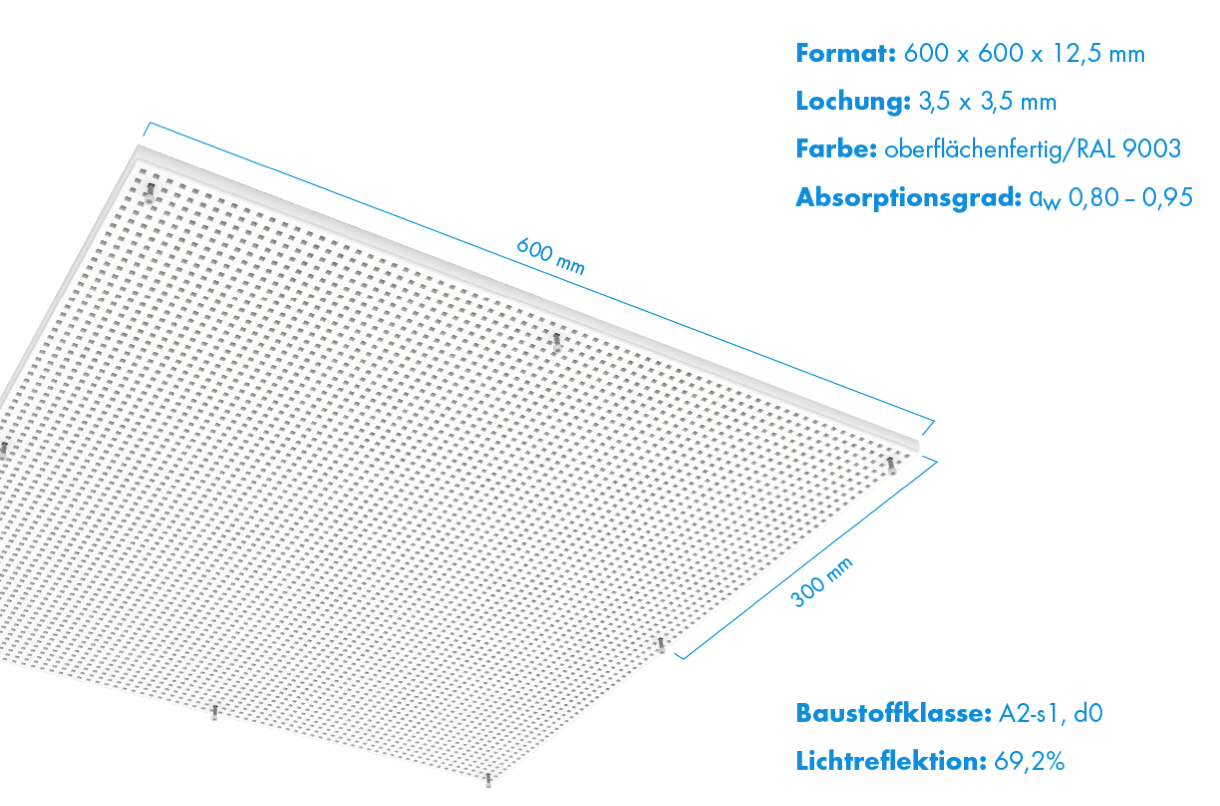 Cleaneo GO! ist eine oberflächenfertige Lochdecke für einfache, schnelle Montage. In nur einem Arbeitsschritt erhalten Sie hervorragende Akustik, ein gesundes Raumklima und eine zeitlose, weiße Designdecke.