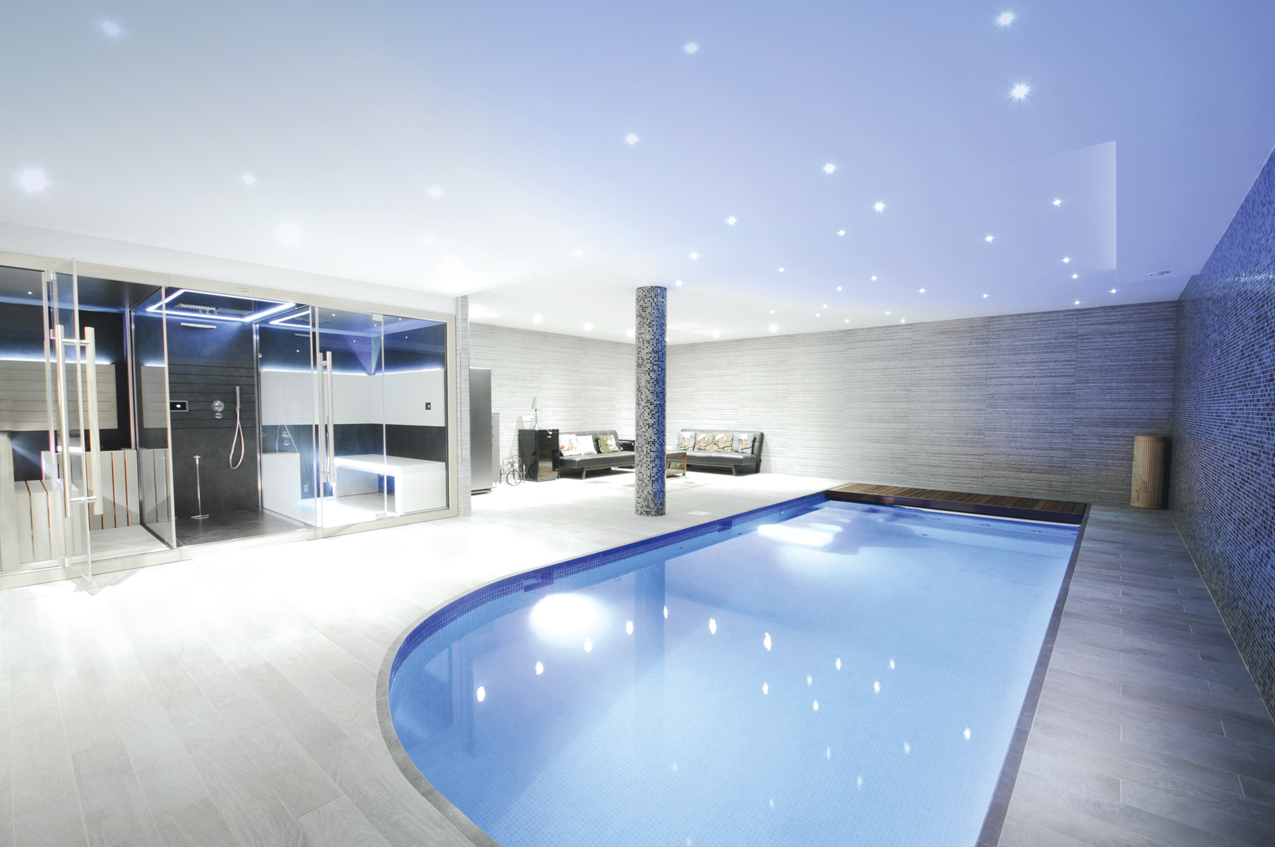 Von wegen, Zement wäre schwer ... mit nur 8 mm Dicke und 10,5 kg/m2 ist AQUAPANEL® Cement Board SkyLite die leichteste zementgebundene Bauplatte auf dem Markt. Das macht die Montage über Kopf deutlich einfacher. Und durch ihren kleinen Biegeradius können Sie auch besondere Gestaltungswunsche einfach umsetzen. Zudem ist sie 100 % wasserbeständig und resistent gegen Schimmelpilzbefall. Perfekt, wenn Decken hoher Nässe und Feuchtebeanspruchung ausgesetzt sind – ob im Schwimmbad oder in der Gemeinschaftsdusche.