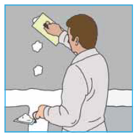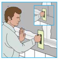 Zur vollflächigen Verspachtelung AQUAPANEL® Q4 Finish mit einem ca. 20 cm breiten Glätter gleichmäßig auftragen. Dabei unebene Stellen in den Fugen füllen und die Oberflächenstruktur glätten (ggf. nach dem Trocknen schleifen). Falls die Oberflächengüte AQ4 erzielt werden muss, ist anschließend eine weitere Schicht AQUAPANEL Q4 Finish aufzutragen.