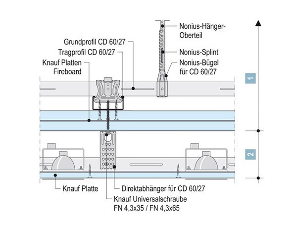 Unter die abgehängte Brandschutzdecke lässt sich zusätzlich eine Akustikdecke mit Cleaneo Platten hängen. Dafür eignen sich alle Cleaneo Modelle. Die unterschiedlichen Brandschutzklassen werden durch die Wahl der Platten für die Brandschutzdecke erzielt.