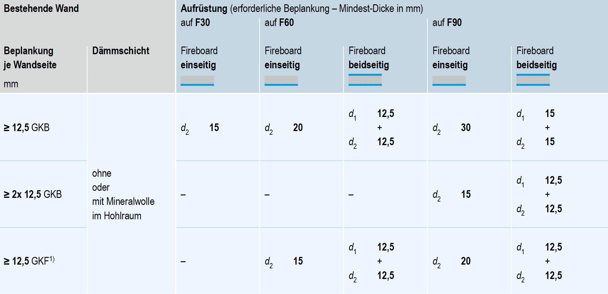 Knauf hat Brandschutz-Konstruktionen für jede Anforderung. Was aber, wenn Sie bestehende Wände mit Brandschutz aufrüsten müssen – beispielsweise die Metallständerwände W111 oder W112 mit Bauplatten? Mit der Knauf Fireboard erzielen Sie bei der Sanierung eine wirtschaftliche Lösung bis F90. Hierbei handelt es sich um Knauf Lösungen, die Sie im Vorfeld hinsichtlich des Verwendbarkeitsnachweises abstimmen sollten.