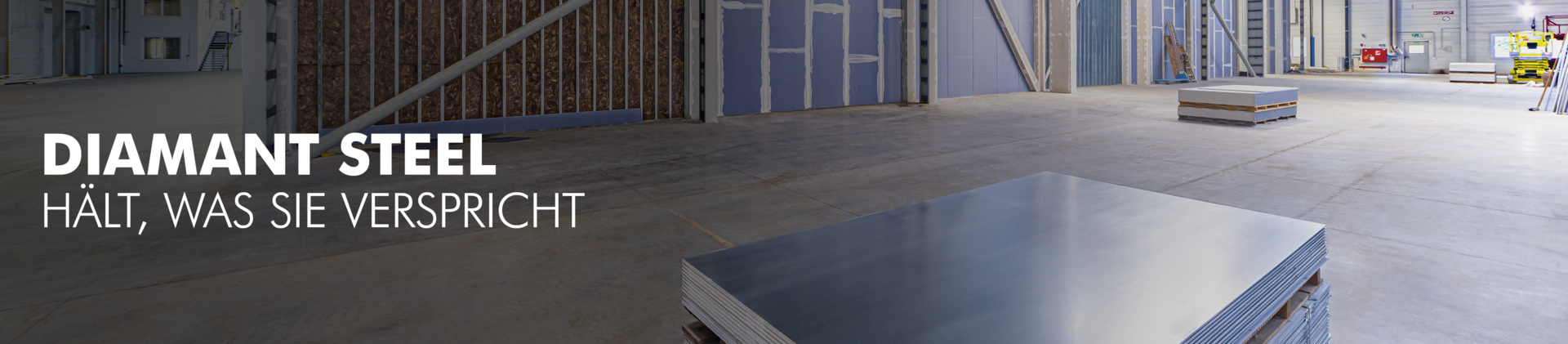 Wenn Sie Metallständerwände mit Diamant Steel beplanken, erstellen Sie effizient eine Flächentraverse. Durch die vollflächige Stahlblechkaschierung mit 0,4 mm Stärke erreichen Sie schon einlagig Konsollasten bis 1,5 kN/m, So bleiben Sie flexible in der Anbringung und Befestigung.