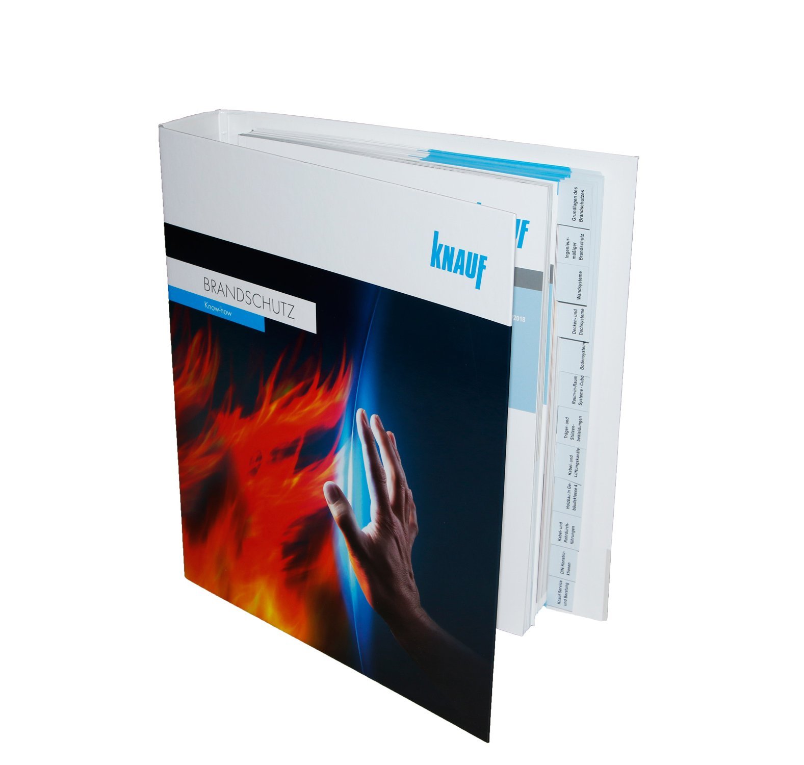 Auf einen Blick: Im Knauf Brandschutzordner finden Sie Grundlagen und Fachwissen rund um baulichen Brandschutz sowie alle wichtigen Informationen über Knauf Brandschutzsysteme, brandschutztechnisch klassifizierte Bauteile des Innenausbaus und ingenieursmäßigen Brandschutz.