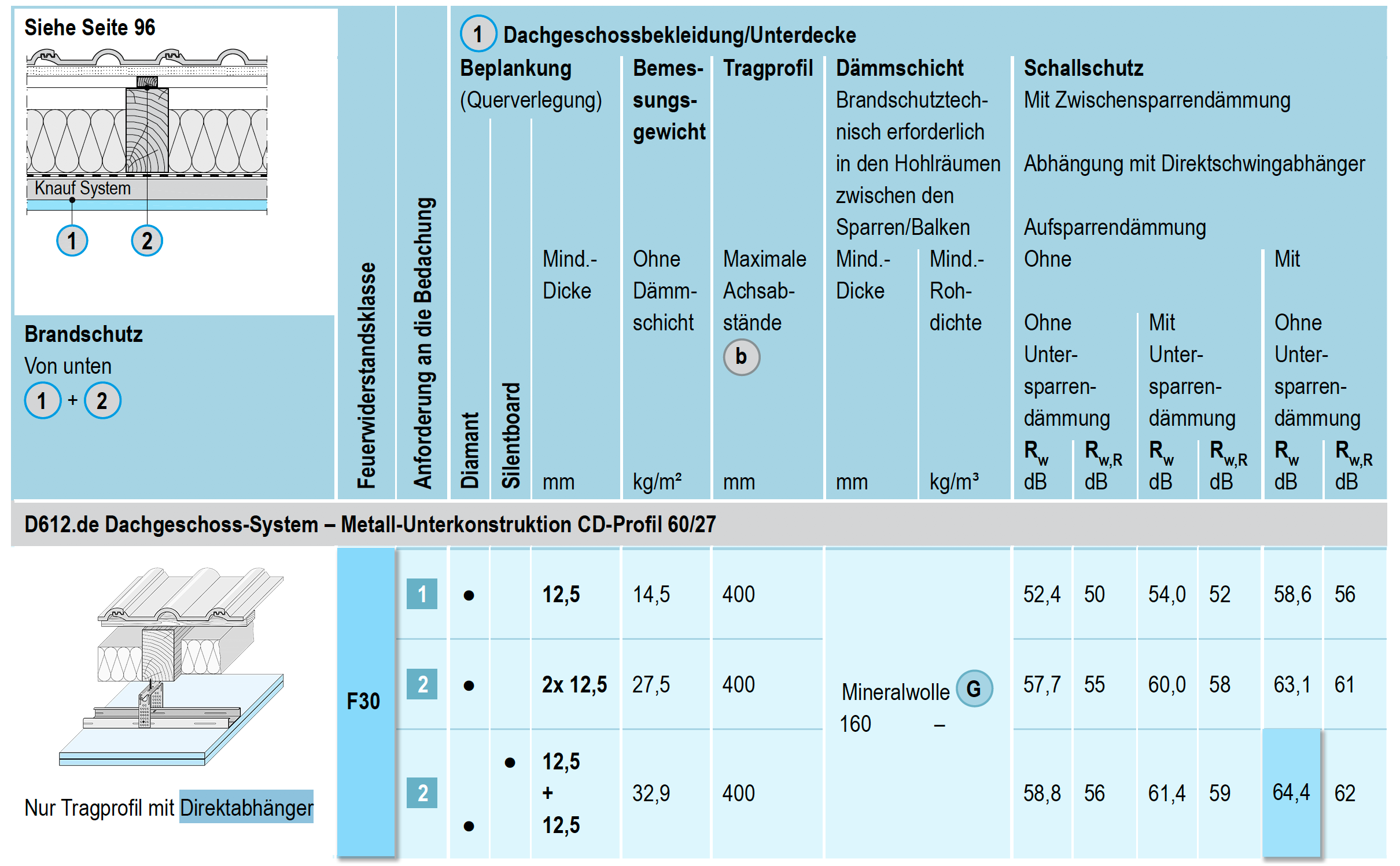 In Kombination aus einer Lage Diamant und einer Lage Silentboard kann ein Schallschutz von bis zu 64,4 Rw db erreicht werden.