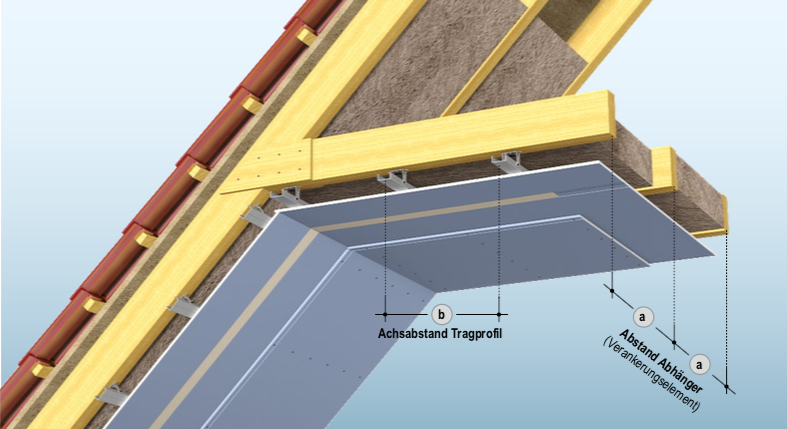 Sind bei einem Dachgeschossausbau erhöhte Anforderung zu erfüllen, sollte die Gipsplattenbeplankung auf einer Unterkonstruktion erfolgen. Mit Hilfe der Knauf Unterkonstruktion aus CD 60/27 Profilen und Direktschwingabhängern lassen sich Unebenheiten im Dachstuhl schnell ausgleichen. Bei entsprechender Beplankung werden zusätzlich Brand- und Schallschutzvorgaben erfüllt.