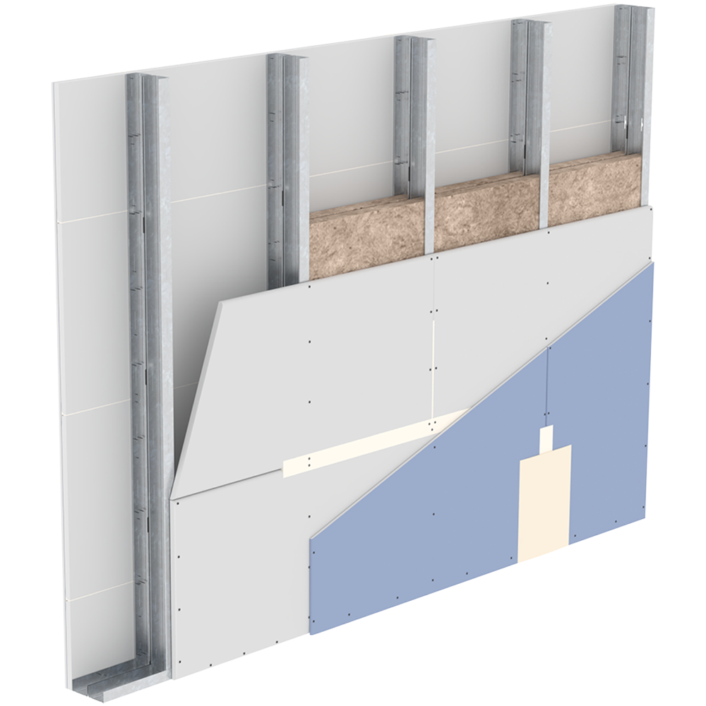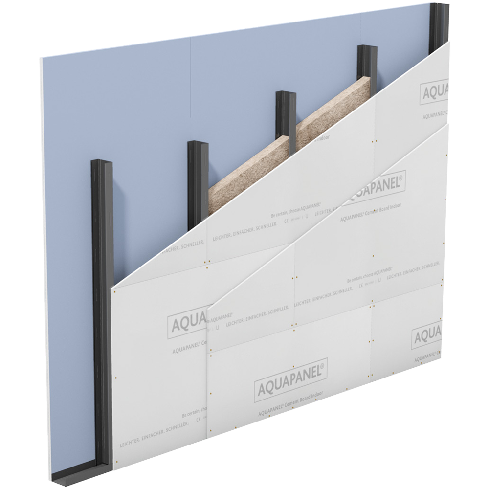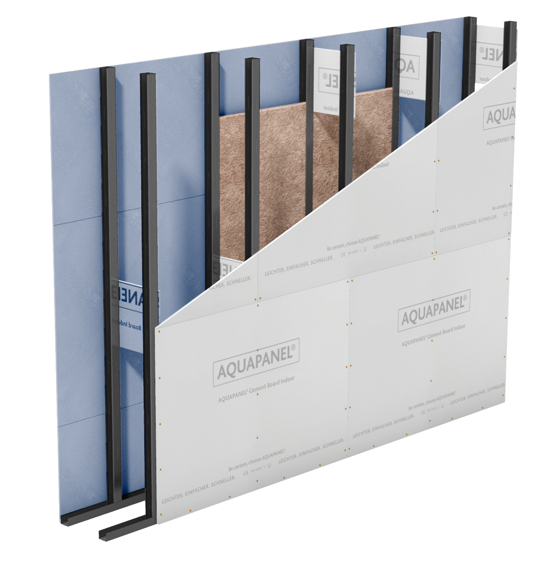 W384.de Metallständerwand mit Mischbeplankung: Diamant und AQUAPANEL® Cement Board Indoor