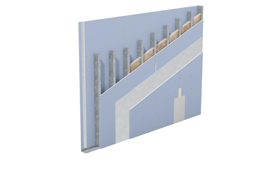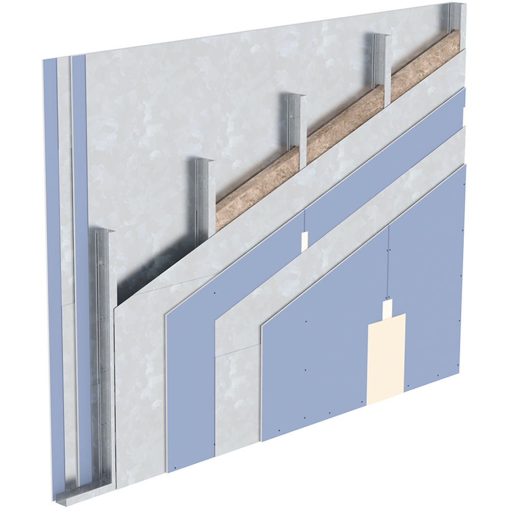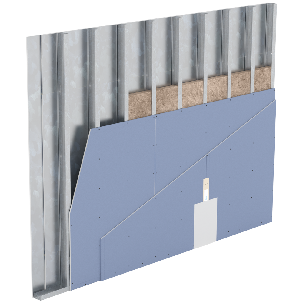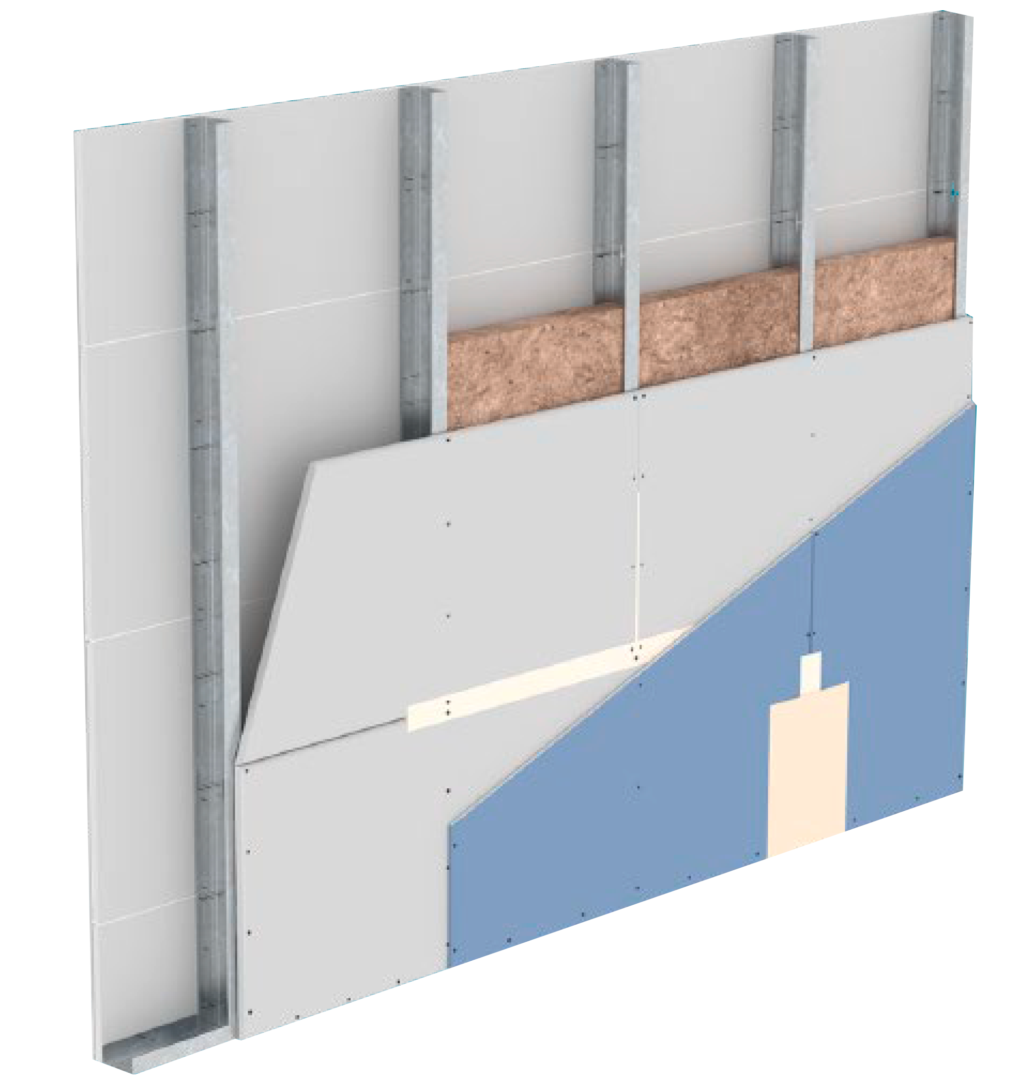 W384.de Metallständerwand mit Mischbeplankung: Diamant und AQUAPANEL® Cement Board Indoor