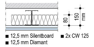 - Mit einer Beplankung aus Diamant X höchste Leistungsfähigkeit in den Bereichen Tragfähigkeit, Brandschutz und Schallschutz
