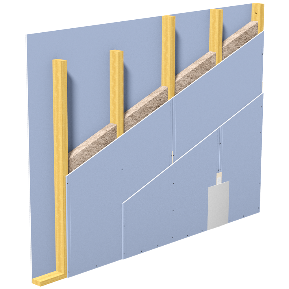 Das auf Abstand ausgebildete Doppelständerwerk können Sie beidseitig mit AQUAPANEL® Cement Board Indoor oder auf der einen Seite mit Diamant und auf der anderen Wandseite mit AQUAPANEL® Cement Board Indoor beplanken.