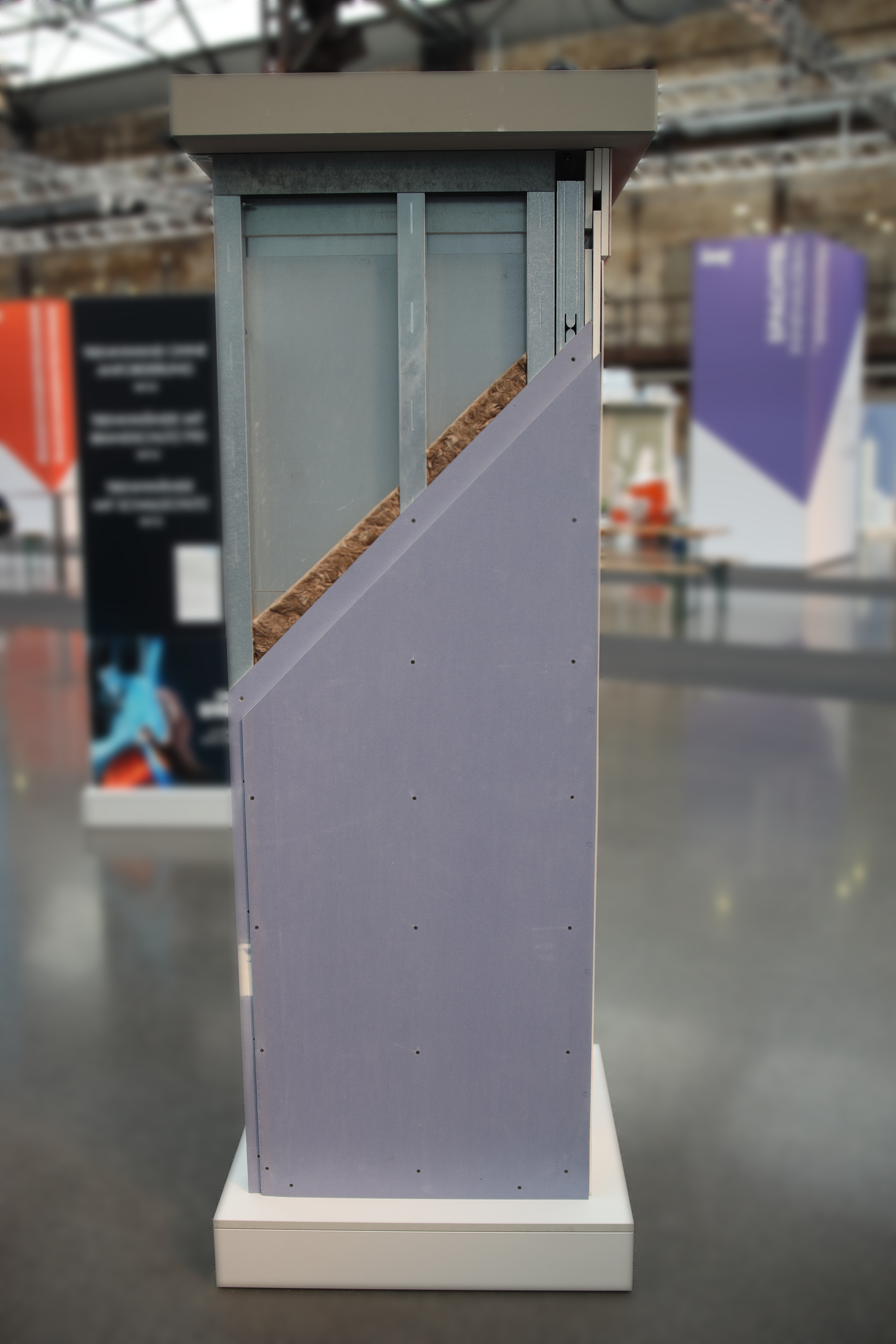 Diamant Steel bringt neben den High-End Diamant-Qualitäten die Blechkaschierung gleich mit und ist als Brandwandbeplankung genau so gut wie als Flächentraverse.