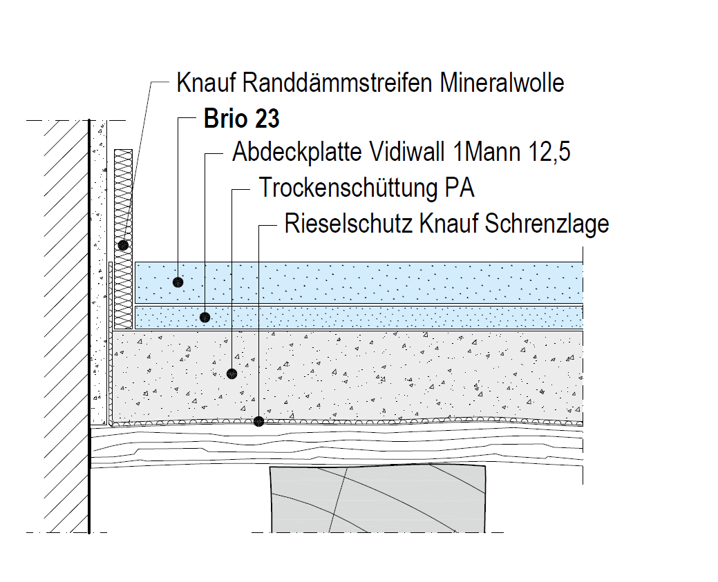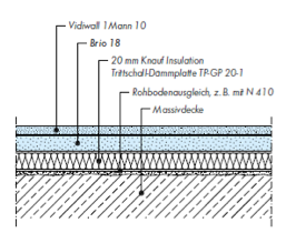 Sind für den Gipsfaser-Boden erhöhte Lasten geplant, kann die Lastaufnahme durch eine Kombination von Brio mit der Gipsfaserplatte Vidiwall 1Mann noch deutlich gesteigert werden.