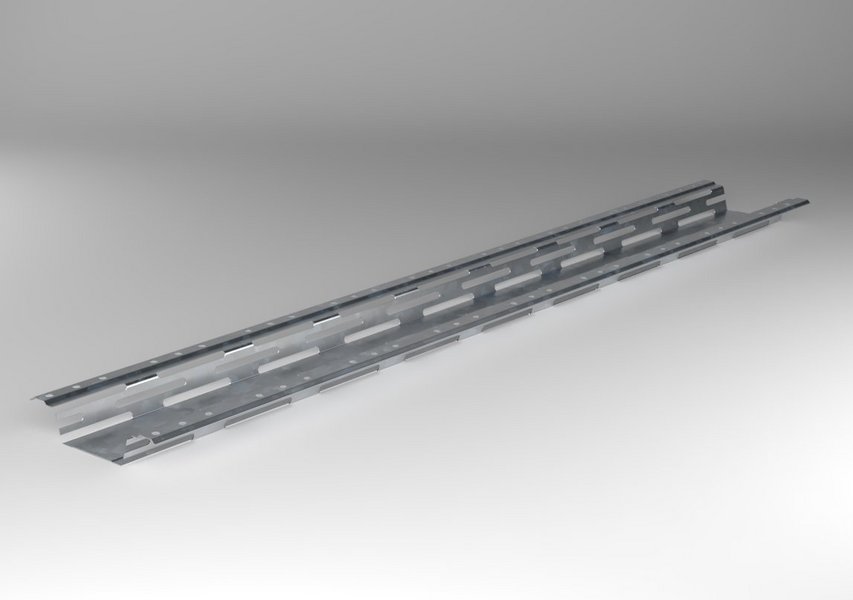 Die Federschiene ist ein verzinktes Stahlblechprofil, das durch die Lochausstanzungen im Flanschbereich eine für den Schallschutz förderliche Federwirkung aufweist und aufgrund der geringen Aufbauhöhe zudem besonders platzsparend ist.