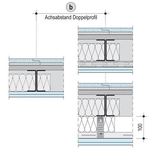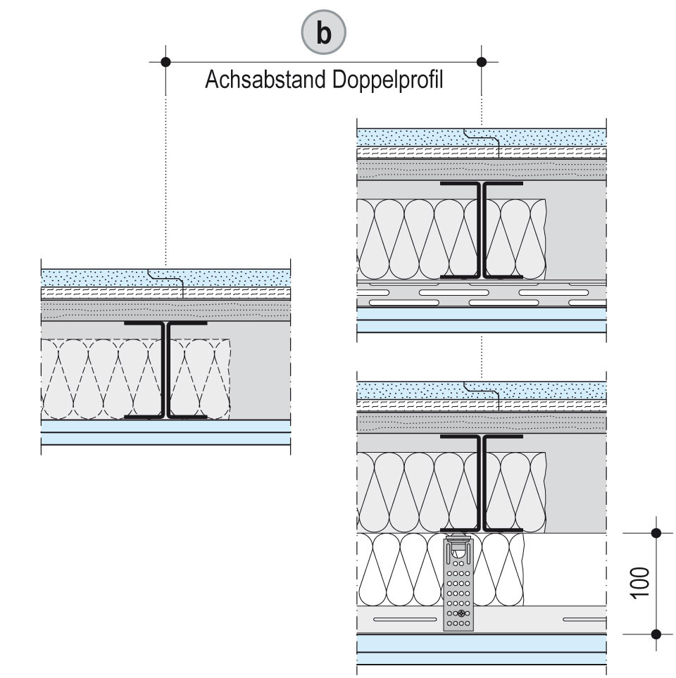 b: Achsabstand Tragprofil/Hutprofil (Spannweite Beplankung)