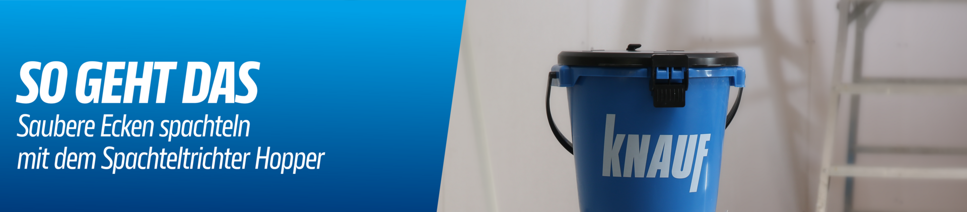 Sparen Sie wertvolle Zeit und Mühe beim Anbringen von Eckschutzprofilen auf Gipskartonwänden! Mit dem Spachteltrichter Hopper können Sie starre Eckverbindungen effizient und sauber mit den Eckschutzprofilen „Dallas“ und „Las Vegas“ herstellen. Dazu werden die Schienen ganz einfach durch den mit pastöser Spachtelmasse gefüllten Spachteltrichter gezogen.