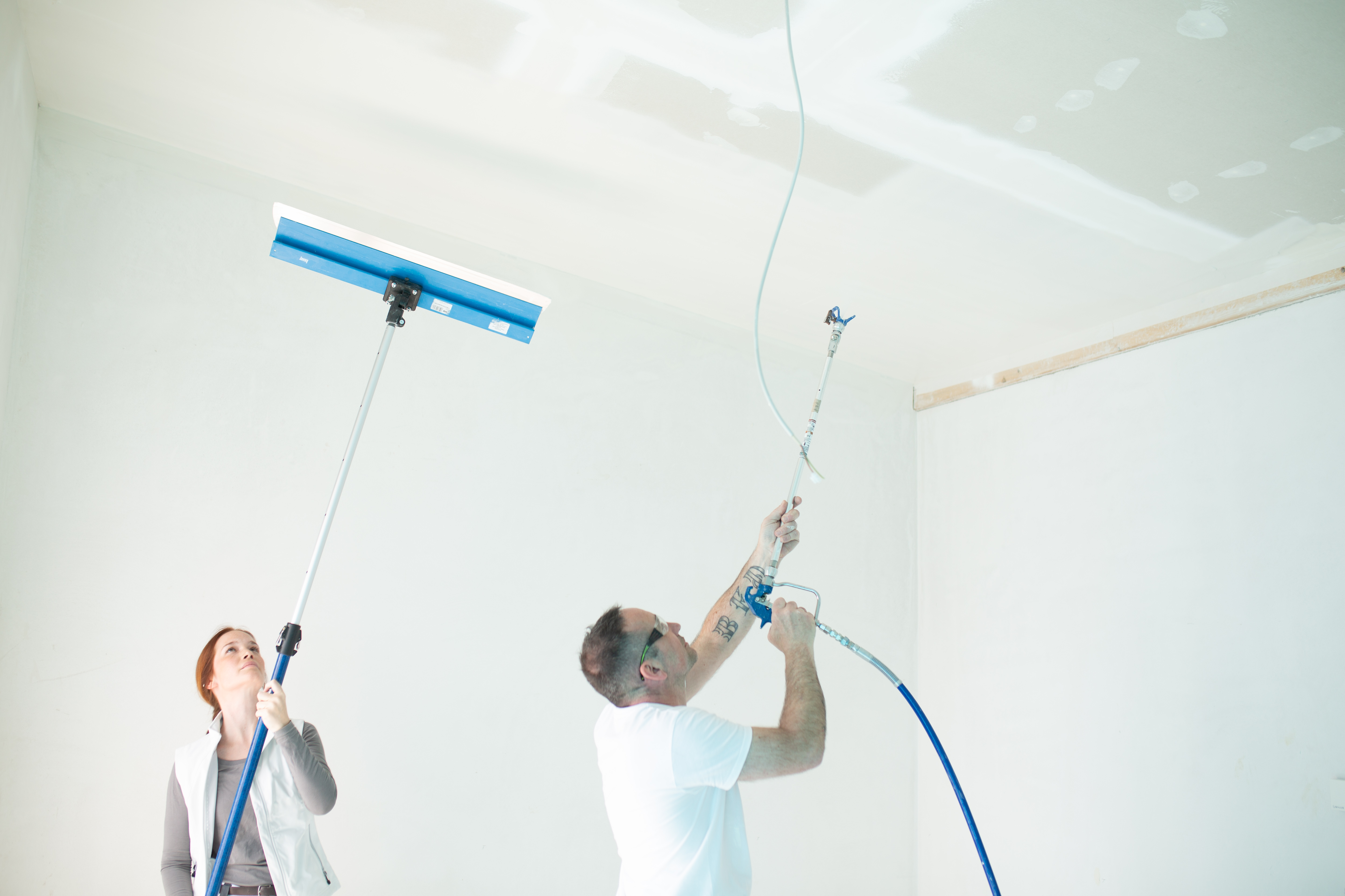 Airlessmaschinen sind spezialisierte Geräte, die Spachtelmassen effizient fördern und an der Düse mit hohem Druck zerstäuben. Die Zerstäubung erfolgt dabei ohne den Einsatz von zusätzlicher Luft, weshalb es zur Bezeichnung "airless" kommt. Die Maschinen eignen sich perfekt für lufttrocknende Spachtelmassen, wie Spritzspachtel Plus.