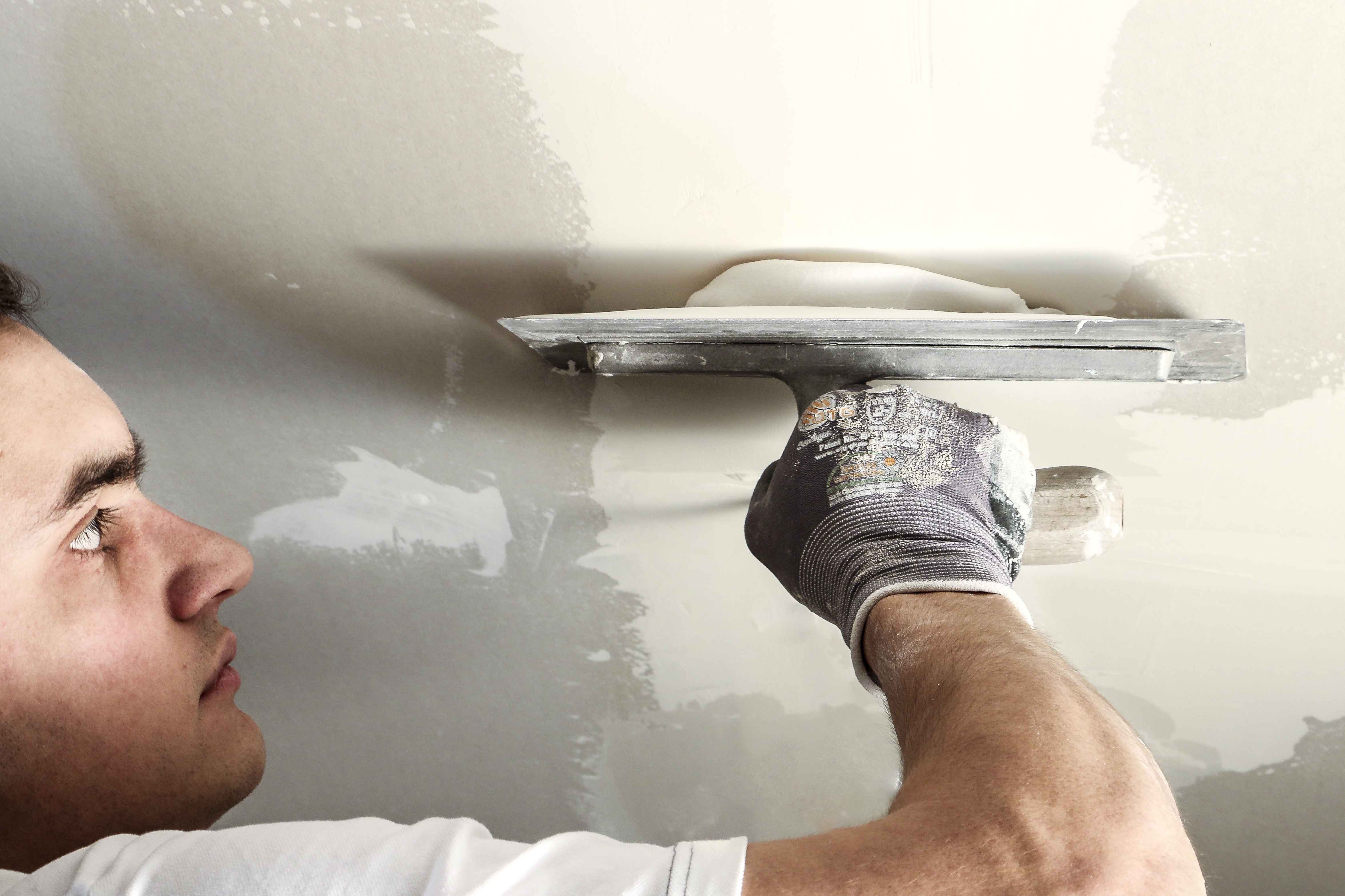 Die klassische Verarbeitung von Spachtelmasse und Putz ist per Hand. Dabei ist ein hohes Maß an Kontrolle nötig, um die Oberflächen sauber zu bearbeiten. Die Spachtelmasse muss man tief in die Fuge eindrücken und dann flach abziehen. Der Spachtelauftrag per Hand ist dort notwendig, wo die maschinelle Verarbeitung nicht möglich ist. Das ist meist bei abbindenden Gips-Spachtelmassen so.
