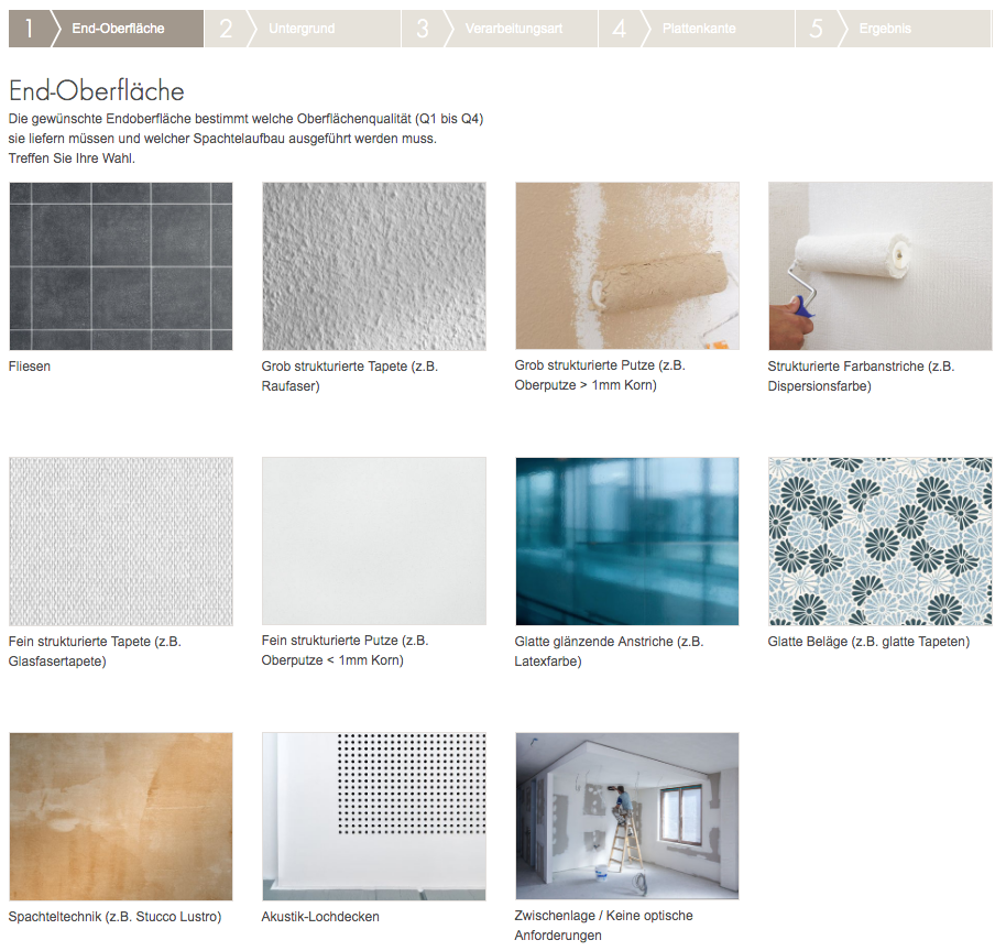 Mit dem Spachtelpiloten können Sie sich einfach und schnell den optimalen Spachtelaufbau für Ihre Anforderung darstellen lassen – im Büro am Rechner und ebenso per Smartphone auf der Baustelle.