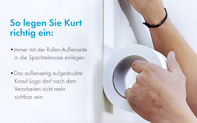 Der 50 mm breite Bewehrungsstreifen zur Fugenverspachtelung gehört zur Standard-Ausstattung von Trockenbau-Profis. Das formstabile hochreißfeste Spezialpapier hat eine mittige Falzrille und feine Faserhärchen, die sich in den Spachtel krallen und so für höchste Fugenfestigkeit sorgen – vorausgesetzt, Sie legen Kurt richtig herum in die Spachtelmasse ein.